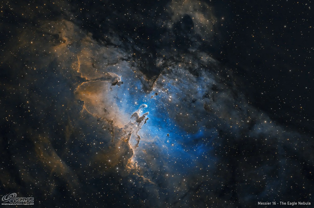 De beroemde Adelaarsnevel komt eind mei al in beeld, hoewel het beter zichtbaar is in juni en juli. Dit complex van emissienevel (NGC 6611) en open sterrenhoop staat laag in het zuidoosten in de late avond. Visueel is M16 interessant in grotere telescopen (25+ cm) met een UHC of OIII filter. De "Pillars of Creation" zijn visueel extreem moeilijk te zien en vereisen zeer grote telescopen (50+ cm) onder perfecte omstandigheden. Fotografisch is M16 spectaculair en een van de meest iconische objecten. De beroemde zuilen komen goed naar voren met langere belichtingen (4-6 uur) en narrowband filters. Eind mei kunnen fotografen al beginnen met dit object voor zomer-projecten.