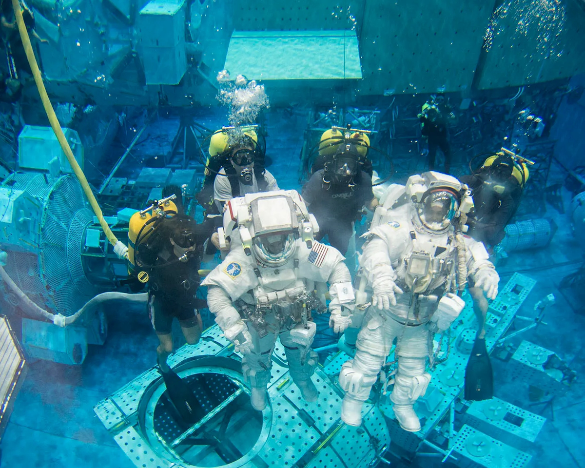Astronauten trainen en bereiden belangrijke ruimtewandelingen voor in het NBL - Foto: NASA