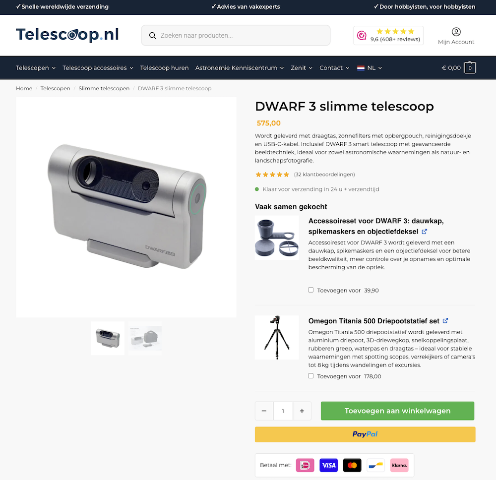 Wij konden de Dwarf 3 langdurig testen en reviewen dankzij Telescoop.nl!