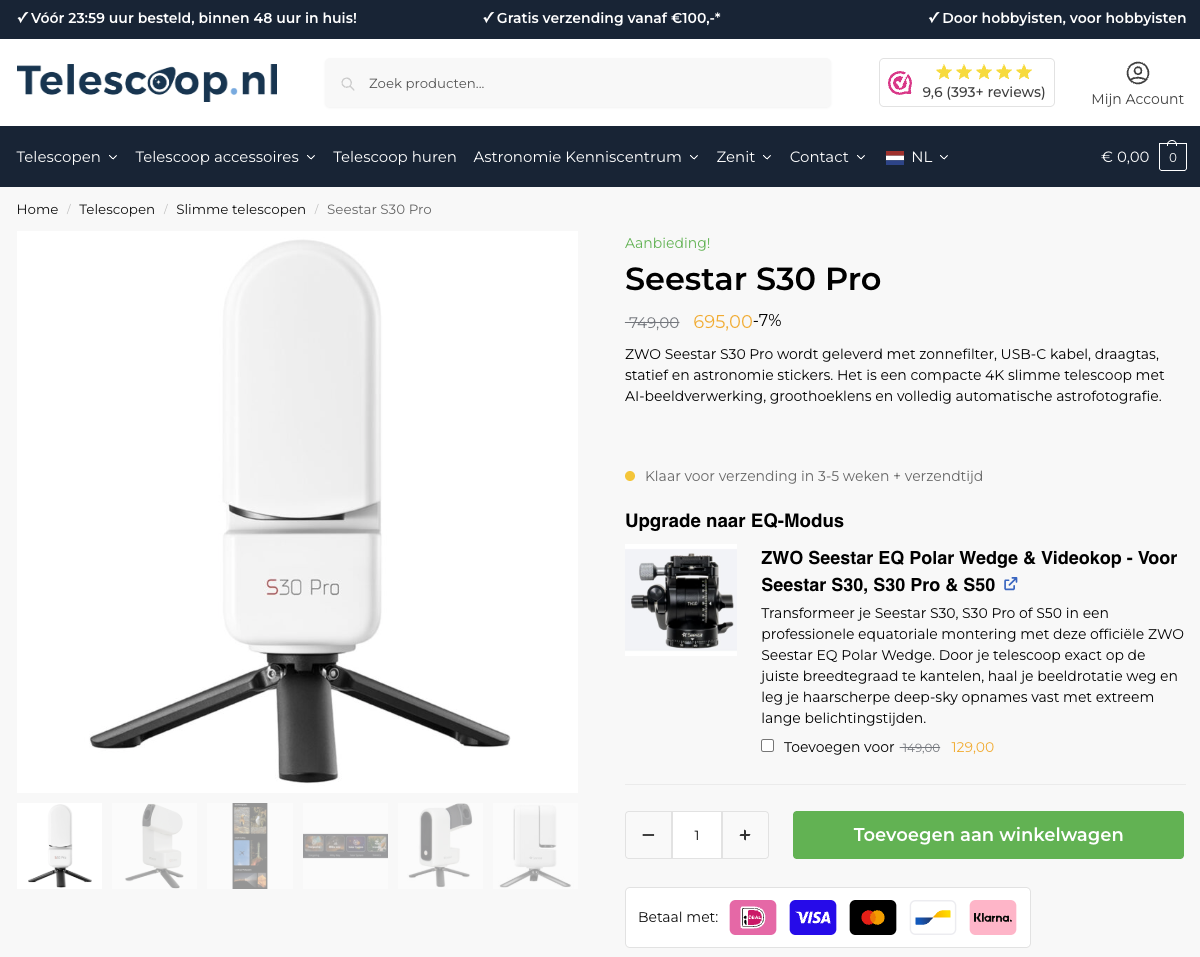 Waar kan je de Seestar S30 Pro kopen?