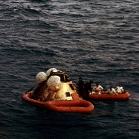 Het gebeurde toenDe Amerikaanse ruimtecapsule Apollo 8, met aan boord de drie astronauten astronauten Frank F. Borman, James A. Lovell en William A. Anders, keert na historische een ruimtevlucht rond de Maan terug naar de Aarde. Nadat de drie astronauten op 21 december werden gelanceerd, kwamen zij op 24 december aan in een baan om de Maan. Na ruim twintig uur in een baan om de Maan te hebben verbleven, werd de terugreis naar aarde aangevangen. Dit was de eerste maal in de geschiedenis dat astronauten een bezoek brachten aan de Maan. Foto: NASA