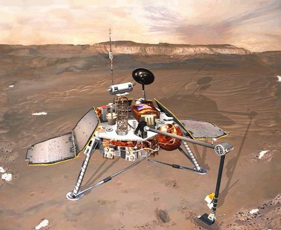 Artistieke impressie van de Mars Polar Lander op de planeet Mars