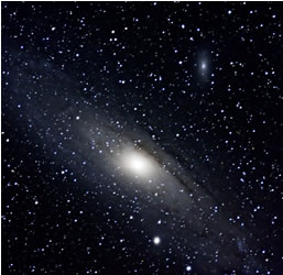 M42 (links) op een gasbehandelde film en M31 (rechts) met een Canon EOS 300D