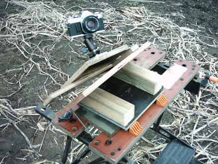 Indien we het eenvoudig en goedkoop willen houden kunnen we een stevige onderbouw maken, je kan dan de Scotch Mount eenvoudig op een stevige tafel zetten en richten naar de poolster, het geheel staat dan relatief stevig. Je kan het ook klemmen tussen een bankschroef (zie foto bovenaan dit artikel) zodat het geheel zer stevig staat. Om dit te maken bevestigen we aan de onderzijde van de Scotch Mount 驮 of meerdere balkjes die aan het uiteinde een hoek hebben van bvb. 52?. Je kan de balkjes ook nog op een stevige plank vastschroeven zodat dit alles een stevig geheel vormt.