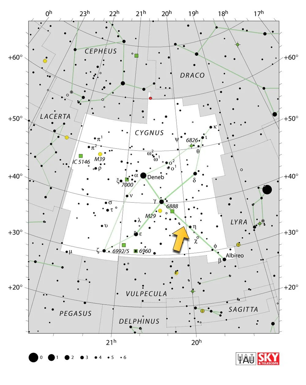 Sh2-101 bevindt zich in het sterrenbeeld Cygnus, de Zwaan, op een rechte klimming van 20u 00m 00s en een declinatie van +35° 22'. Dit plaatst het object in het hart van de zomer- en herfstmelkweg, in een regio van de hemel die voor amateur-astronomen en astrofotografen synoniem is met uitgestrektheid, rijkdom en een bijna overweldigende dichtheid aan nevelstructuren en sterrenvelden. De afstand tot Sh2-101 wordt geschat op ongeveer 5.800 tot 6.000 lichtjaar, wat het object plaatst in de Cygnus OB1-associatie, een van de grote concentraties van jonge, massieve sterren in de Cygnusarm van de melkweg. Op die afstand heeft de nevel een schijnbare diameter van ongeveer 16 bij 9 boogminuten voor het centrale, heldere deel, met omliggende flauwere structuren die zich verder uitstrekken. De werkelijke fysische diameter van het centrale nevelgedeelte bedraagt op basis van de aangenomen afstand ruwweg 25 tot 30 lichtjaar, compact maar substantieel. De ligging in Cygnus heeft een bijzondere dimensie voor de Tulpnevel, want ze bevindt zich op slechts circa 2 graden van een van de meest bijzondere en bestudeerde sterrensystemen in de nabije melkweg: Cygnus X-1, het eerste röntgendubbelster dat ooit werd geïdentificeerd als kandidaat voor een zwart gat. Die nabijheid is niet alleen een geografische toevalligheid, Sh2-101 en Cygnus X-1 bevinden zich op vergelijkbare afstanden en zijn mogelijk fysiek geassocieerd als onderdelen van hetzelfde grotere Cygnus OB3-sterassociatiecomplex. Op brede astrofoto's van de Tulpnevel is Cygnus X-1 zichtbaar als een heldere ster aan de rand van het beeldveld, een ster die, bij nader inzien, niet zo gewoon is als ze eruitziet.Voor waarnemers op het noordelijk halfrond is Sh2-101 het best te observeren van juni tot november, wanneer Cygnus hoog aan de hemel staat. Vanuit België en Nederland bereikt het sterrenbeeld een maximale hoogte van 75 tot 80 graden boven de horizon, bijna recht boven het hoofd, wat het tot een van de meest gunstig gelegen zomernevel maakt.