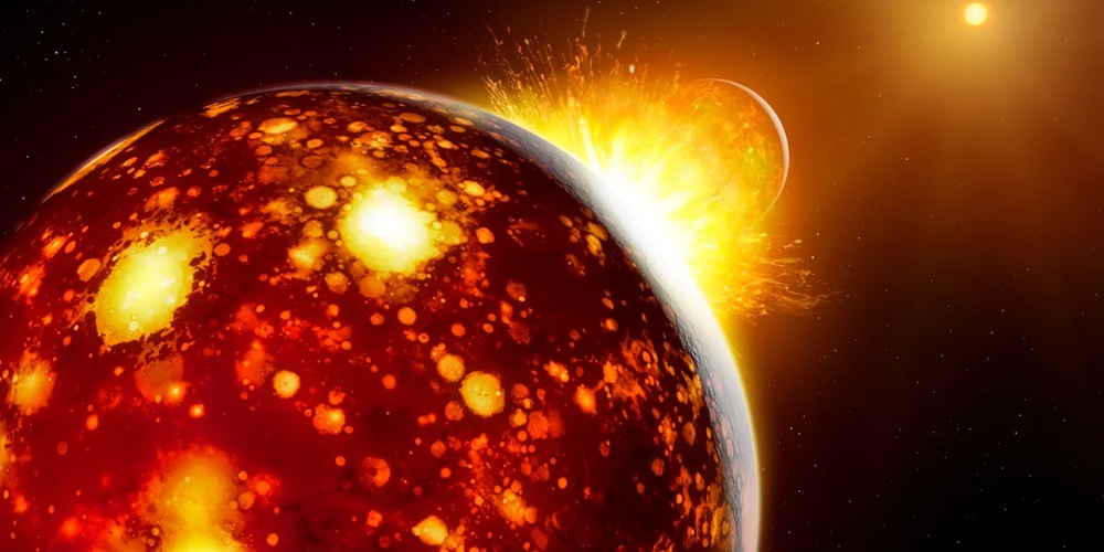 Ongeveer 4,5 miljard jaar geleden vond de meest ingrijpende gebeurtenis in de geschiedenis van onze planeet plaats: een enorm hemellichaam genaamd Theia botste met de jonge aarde. Hoe de botsing zich precies heeft voltrokken en wat er daarna precies is gebeurd, is nog niet definitief opgehelderd. Wat echter wel zeker is, is dat de grootte, samenstelling en baan van de aarde hierdoor zijn veranderd, en dat de inslag het begin markeerde van onze trouwe metgezel in de ruimte, de maan.